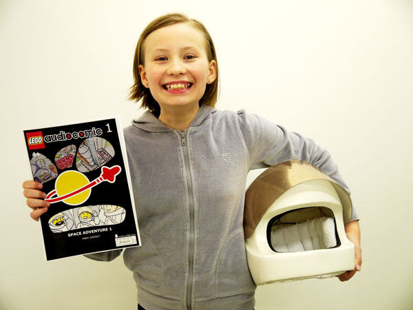 設計的概念相當簡單,只要戴上這個樂高安全帽,在小朋友看漫畫的過程中,可以透過樂高帽裡頭的漫畫錄音檔,將漫畫內容讀出,而樂高帽不僅有音量鍵,也有專屬的翻頁鍵,同時也可以透過樂高方塊造型的隨身碟來儲存相關的檔案,真是多樣願望一次滿足的好物啊!