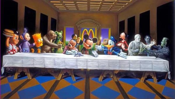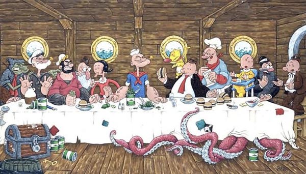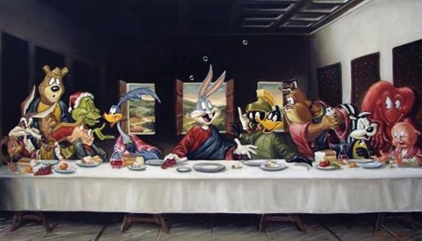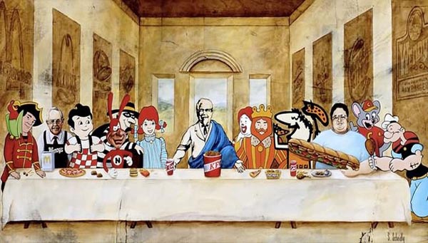 這幅不朽畫作作在十五世紀時即啟發了不少其他的藝術家,至今也依然魅力不減。以下匯集了眾多優秀設計師所惡搞繪製的最後的晚餐,不論你想吃速食、菠菜,還是傳統一點的葡萄酒配麵包,都可以在下面作品中找到,請君慢慢享用 XD