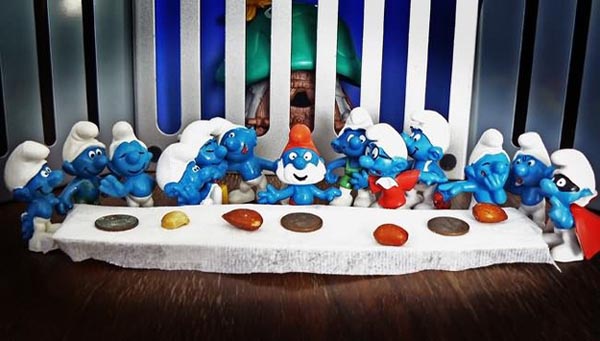 藍色小精靈版的最後的晚餐,嚴肅指數瞬間歸零。
