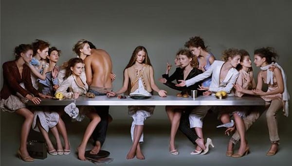 在眾名模的加持下,最後的晚餐也可以吃得很時尚!(咦,裸體吃晚餐是怎麼回事!?)