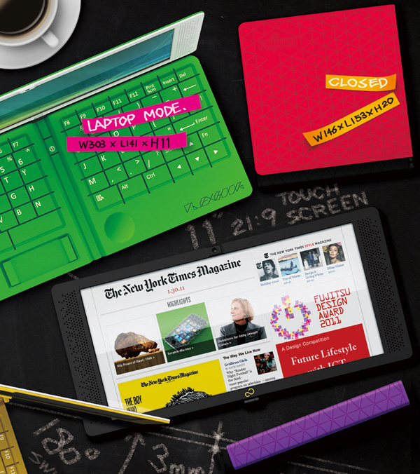 目前居住在新加坡的台灣設計師Hao-Chun Huang(音譯,有人知道設計師的大名嗎?),日前設計了一款多功能用途的概念行動裝置「Flexbook」,在超過1000多件參賽作品參賽的「2011 富士通設計大獎賽(FUJITSU DESIGN AWARD)」之間獲得了入圍提名,光是說到這裡就值得大家為他致敬鼓掌啊!(拍拍拍~)