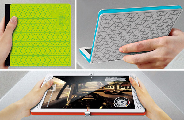 Flexbook想當成平板使用時,只需要將螢幕翻摺過來,就可以平板或電子書使用,同時兼具了筆電與平板電腦的功能,Flexbook的橡膠防水材質更提高它的功能性,而橡膠材質更有許多顏色可能性可選擇,這麼棒的概念設計,你說它能不入圍嗎?