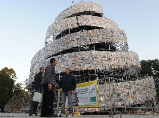 由知名阿根廷藝術家Marta Minujin發起的這項活動,總共從世界各地募集到三萬本書(其中一萬六千本是五十二位派駐在布宜諾艾利斯的大使捐的),蓋成了六層樓、二十五公尺高的巴比塔,這並不是Minujin第一次的創舉,在1983年阿根廷實施民主後,她便曾用從前軍政府時期的禁書,複製雅典的帕德嫩神廟。