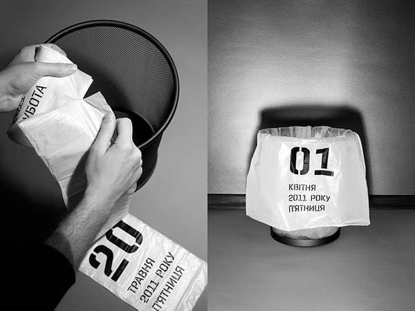 烏克蘭設計師Yurko Gutsulyak觀察到人們生活中,每天都會使用到垃圾袋同時也都會撕掉當天的日曆,所以靈機一動將這兩個日常生活元素結合在一塊,就成了這個超酷的「垃圾袋日曆(Trash Calendar)」。