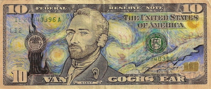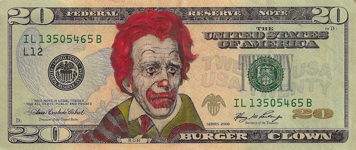 除了大富翁遊戲裡會把鈔票當玩具之外,大概很少有人會跟錢開玩笑,(馬上自打巴掌)嗯…其實是有的XD,我們才剛繳完稅給台灣政府這個蚊子館製造機跟奢華垃圾筒產生器還記得嗎…。先不管蚊子不蚊子了,美國流行文化藝術家James Charles藉由一系列被他改造的美鈔,諷刺衝擊全球的美國印鈔貨幣政策。
