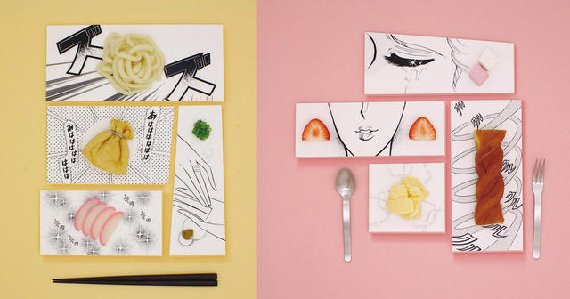 日本設計師 mika tsutai 結合了日系傳統漫畫與黑白元素,設計這樣一器列有趣的盤子。藉由廚師之手利用食物來排盤裝飾互動,使得整體上形成一種有趣的視覺效果,讓一盤佳餚變成一個具有主題故事性的漫畫,當然用餐者也可以自由在上面點綴增加故事內容。