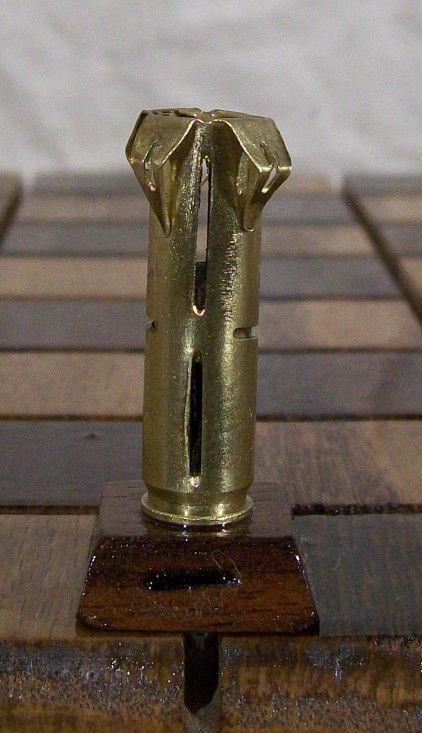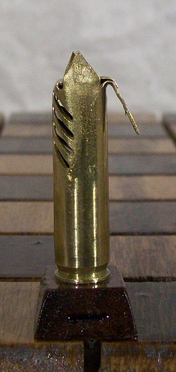 這副西洋棋是由223個子彈彈殼所組成。一邊是用黃銅製作,一邊則是用鋼鐵製作,可說是man到一個境界。每個子彈約一又四分之一到二又二分之一長,而當中是沒有火藥的。不論是國王、皇后,還是前排的小兵,作工都相當的精緻。如果可以單買的話,挑個喜歡的兵種回家擺放感覺也很對味啊! XD