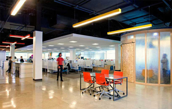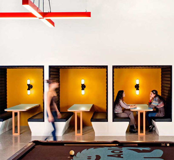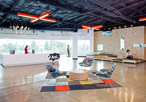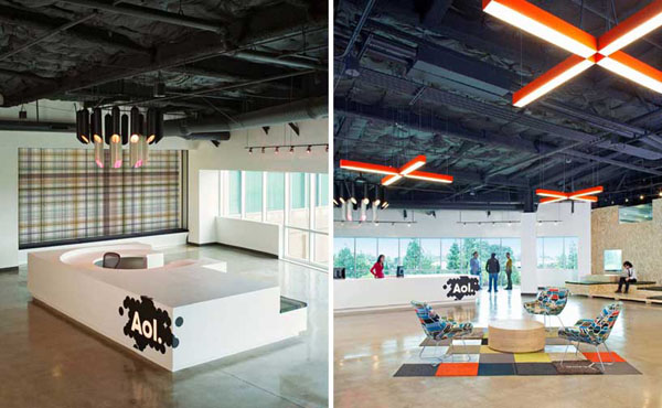 每次看到這些阿豆仔的辦公室,都要在心中默念幾遍「人比人,氣死人」,每天進辦公室時才不會太過無力,為什麼?看看Studio O+A為曾經在網路界風光一時的「AOL」(美國線上American Online)位於加州Palo Alto新總部所設計的辦公室吧!看了就一整個捶心肝啊!