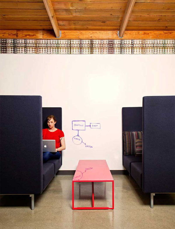 會議室散落在辦公室各處,包廂式的隱密空間,剛好容納得下溫和的激烈的冗長的打混的開會方式,供員工們相互激盪創意。