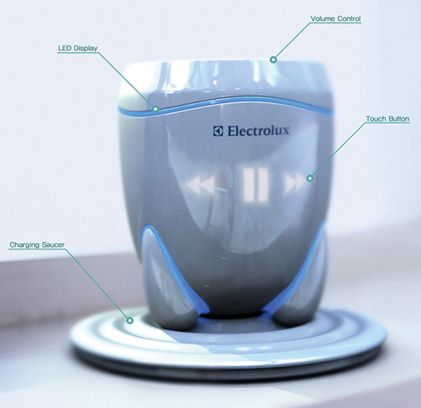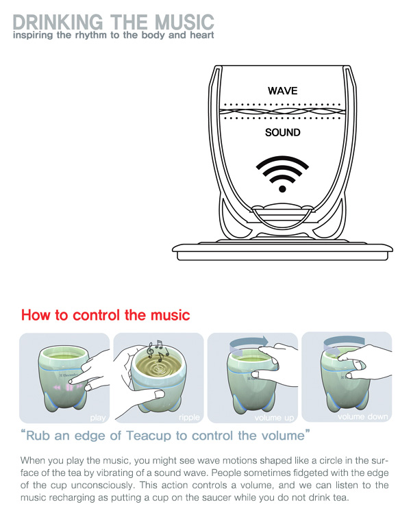 聽音樂不僅是種享受,更是抒發心情最棒的管道之一,由設計師 Kukil Han 所發想的概念音樂杯 Drinking the Music,讓音樂經由杯底喇叭發聲,再透過杯中的液體流洩而出,用手指輕劃杯緣可以調整音量大小,杯身造型精巧圓潤,很有日本禪義,用來喝杯午後的老人茶也很適合!