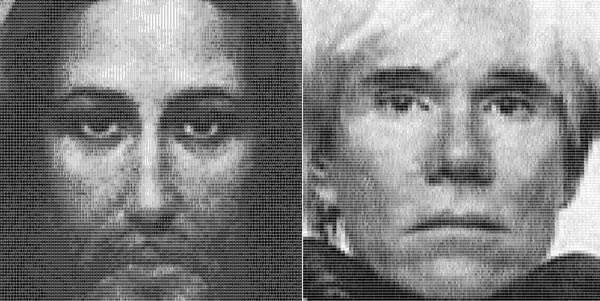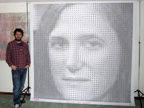 來自美國的藝術家Scott Blake以他的QR碼和條碼聞名,究竟要怎麼以這種死板單調的黑白圖案聞名呢?他利用它們來作畫!圖案裡的每個條碼都是可以被讀取的,讀取後會連結到該肖像作裡的主角。例如,貓王的肖像上的QR Code會連結到他許多的CD和音樂。