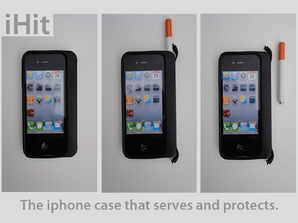 這款名為「iHit」的愛鳳保護套,設計者在右方騰出能夠放得下一支香煙寬度的空間,讓你可以擺放抽到一半的香煙,而下面也有一個更小的空間可以放東西,對於視煙如命的愛鳳使用者來說,真的是佛心來的好設計啊!