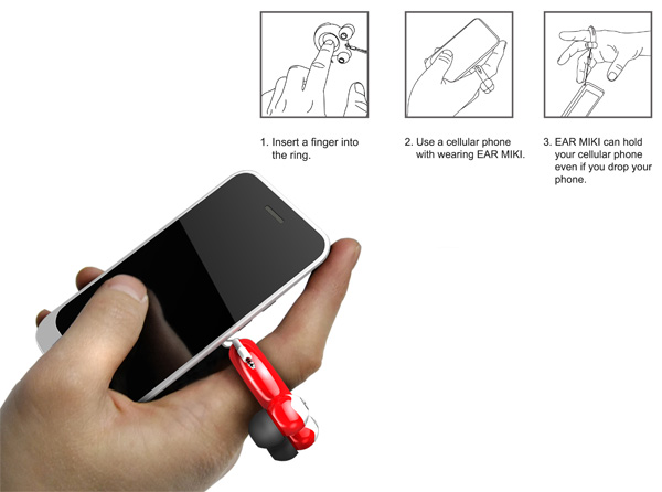使用這款耳機的時候可以將手指插入環中,如此一來就可以保護你的手機或是MP3不會掉落地面,還可以當溜溜球來玩(誤)。