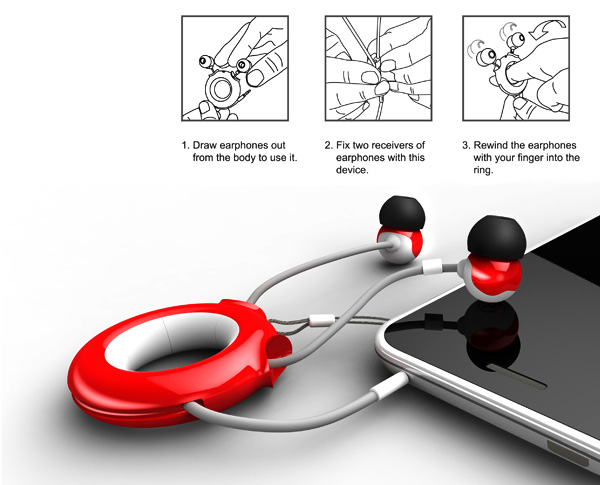耳機部份的使用當然也是很便利才能得獎,這個環狀部份不只有安全概念,還有集線器的功能,需要使用的時候可以直接將它拉出,要收納的時候只要將手指放進去轉轉轉