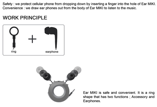 這個『Ear MIKI』是由Jun Hyun Kim、 Byeol Shim和Young Jun Kim這三位設計師共同設計的,得到了2011 IDEA Award的獎項,現在還是概念產品而已。