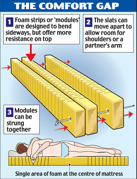 相擁的時候,手就能伸入床墊裡,不用一直被壓著不舒服,腳丫子也可以愛怎麼擺就怎麼擺,還可以依照自己的習慣、身高跟需求拆組,這個設計同時也獲得2007年德國紅點設計概念大獎呢!