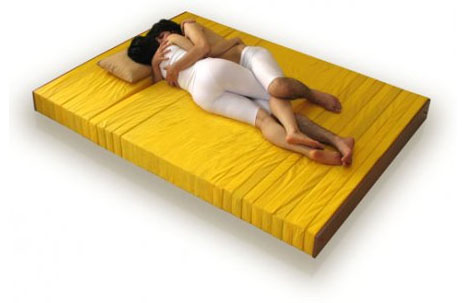 於是設計師Majtabvi就設計了這一款[Love Mattress]的床墊,中間的部份是固定的物件,在前後端則設計了許多分裂的區塊,像把床墊切片一樣,平均分散壓力,好讓人睡在上面的各種姿勢都能很!舒!服!