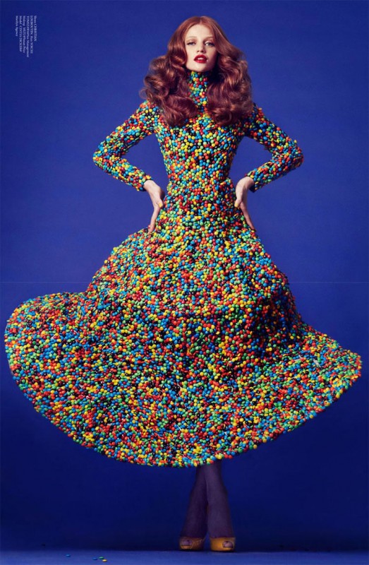 造型師 Hissa Igarashi 跟攝影師Ryan Yoon為了Virgine Magazine拍攝了「衣」系列的封面,一反往常的華麗禮服、細節裝飾很繁瑣的造型,卻用了很環保或是很令人訝異的素材。上面這個「All you can get」還真是「衣」與雙「罐」啊!到底怎麼黏起來的阿?好令人好奇噢!流線成這樣也應該很重吧…。落實環保的概念之外,重複的圖象同時也呈現一種整齊劃一的美,而且竟有種好震懾的感覺呀!