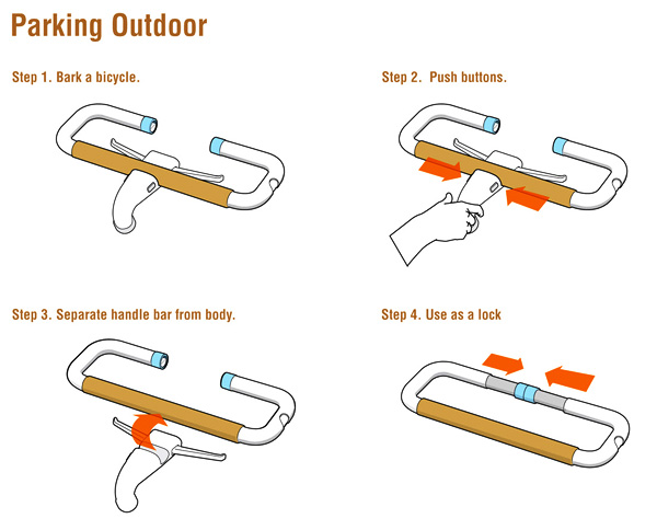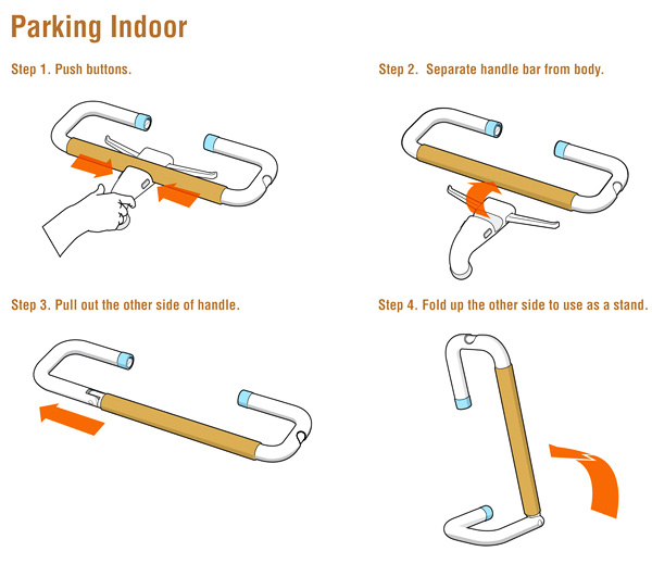那第二個願望是什麼呢?愛車的大人物應該知道很多的公路車和單速車是沒有駐車架的,每次都要找地方靠也是頗不方便,當然也會怕車上的烤漆被磨掉,沒錯!!就是剛才的把手,只要經過簡單的幾個折疊步驟,它就變成便利駐車架了。