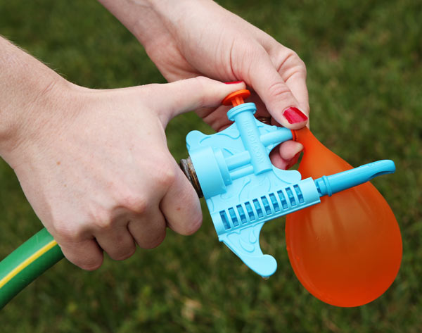 這把水球填充器,最大的重點就是「快」,它特殊的設計可以直接裝在水管上,可以在30秒之內讓你「組裝」完成一顆水球,讓你不再彈盡糧絕,而下巴把柄的綁尾裝置,讓你可以超簡單就綁好一顆水球,不再笨手笨腳等著被K。