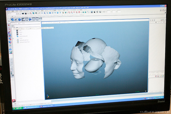 來到Clone Factory,不用抽血打針,只要乖乖坐在那邊,擺好姿勢,讓SLR相機拍照用360度中的所有角度拍下無限多張照片,輸入電腦後製出你頭部的3D立體模型,最後再用印表機和石膏粉輸出,修飾一下臉部的細節輪廓以及多餘的石膏,你的minime娃娃就完成啦!前後所花的時間絕對比自己生一個快,還少了複製人的麻煩爭議,據說許多日本人結婚時都會跑來訂做,用在自己的結婚典禮中,或是其他具有特殊意義的儀式場合。