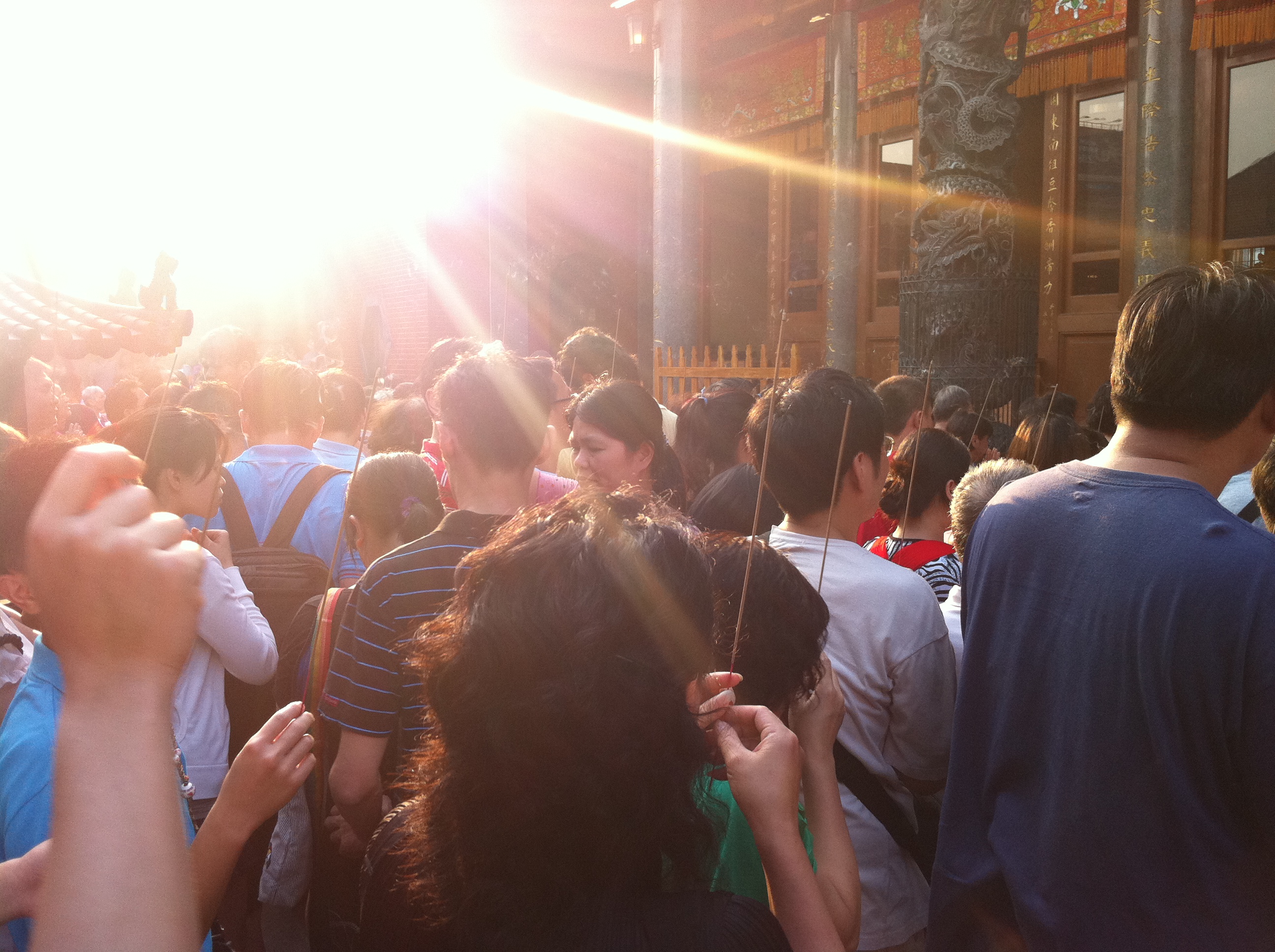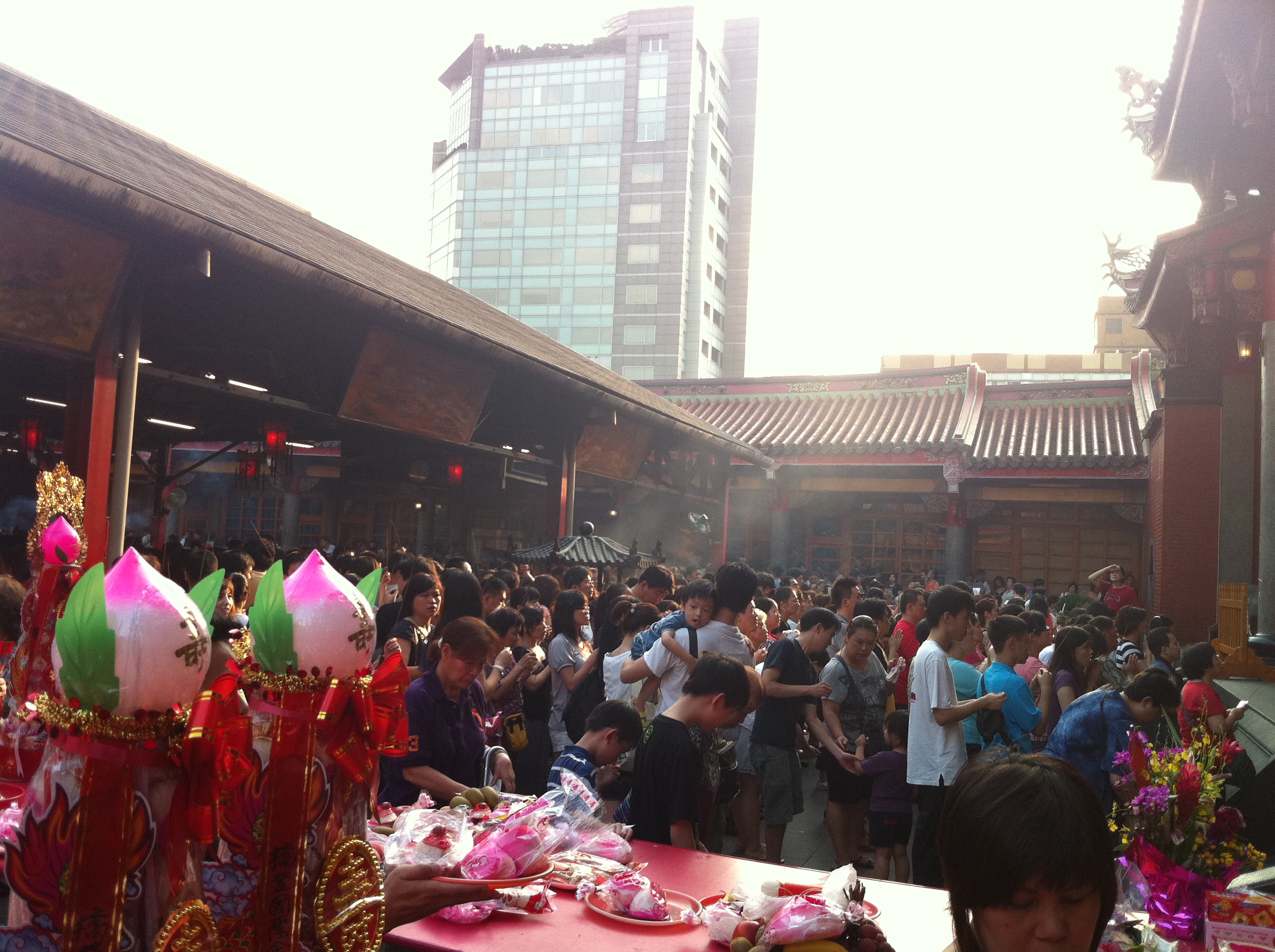 雖然影片是去年的,不過情況可以照搬到今年的恩主公生日,同樣媲美跨年演唱會的人潮。到現場為關聖帝君祝壽開生日趴的民眾心裡帶著和網路鄉民一樣的想法,有神快拜(誤)!!不只是心態類似,你可以發現真的也有年輕男女擴散在人潮之中,看得出來在現實生活的折磨之下,管他什麼潮男潮女到了這裡都要變成善男信女,拜拜就不只是老人家的事。