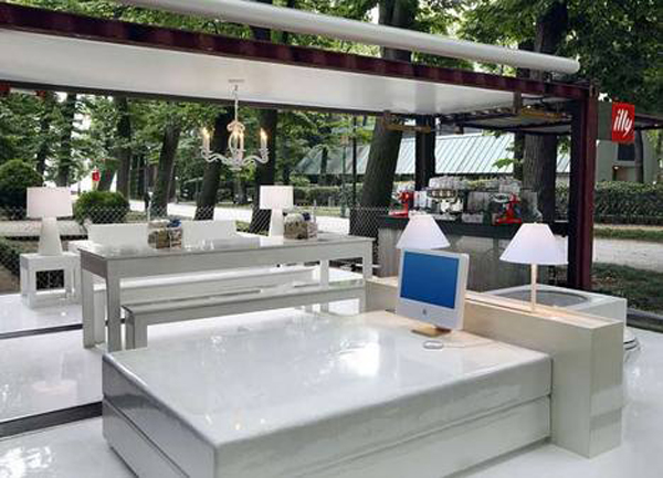 從一個骯髒的廢棄貨櫃變成這樣精美的住處需要多少時間呢?答案是大約一分鐘。除了藝術價值與實用性顧及以外,還能藉由卡車輕易的在各城市間移動。這款貨櫃屋最早展出於威尼斯,之後則到其他國家展出,09 年還有一部關於這棟貨櫃屋的影片在 AFI 達拉斯國際影展展出,雖然這只是 illy 邀請 Adam Kalkin 的展示合作,但如果真的可以設立類似的行動據點,想必每天到了開店閉店的時候,一定會有很多人駐足圍觀的吧XD