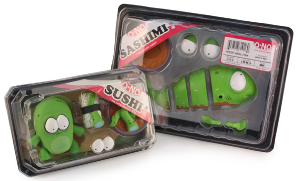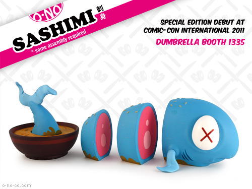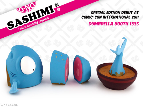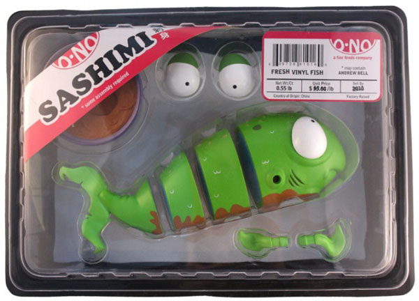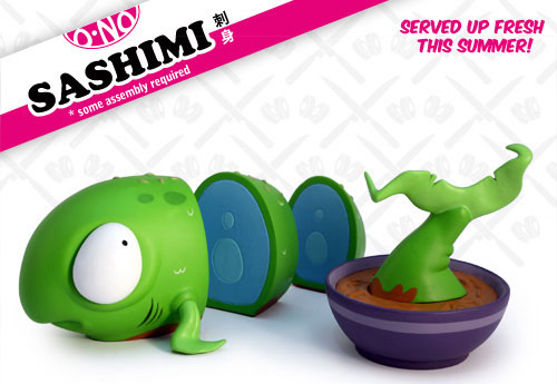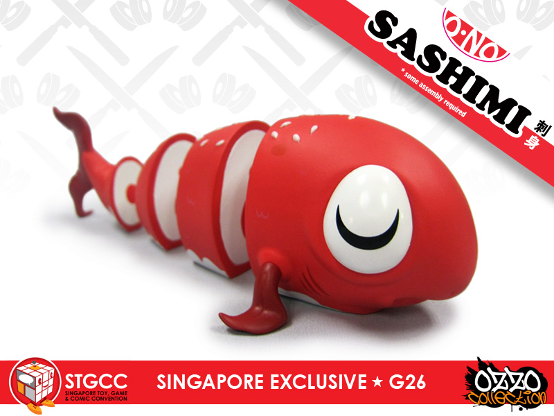 雖說Andrew並不算是個多產的設計師,不過他每回的作品總是能引起諸多話題(很帶梗來著),譬如這個"O-No Sashimi"刺身系列,就相當令人捧腹啊,這款小紅刺身,即將在今年的STGCC(新加坡玩具電玩漫畫展)中亮相,看到這可憐兮兮被作成刺身的小紅魚,我下次去吃日本料理應該就下不了手了吧,阿彌陀佛。