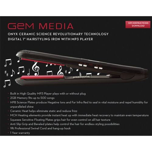 至於產品還有什麼特色:插電即可立即播放MP3、內建2G記憶體可以儲存500首歌曲(試著想像把這玩意連上USB的那種畫面)、420度高溫保證讓您的頭髮平順、還有長達九呎的線材可以讓您隨意找地方燙髮,以及一年的產品保固...價格只要售價199美金,就可以把這個跨世代的燙髮商品帶回家呢!