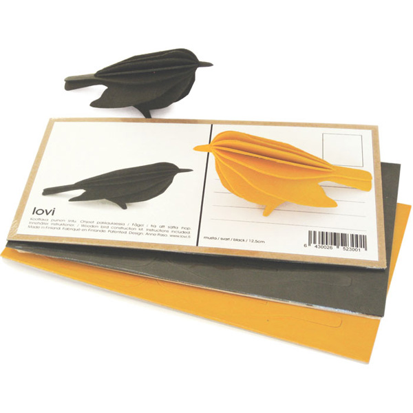 重點是,明信片設計者Anne Paso選擇可回收利用材質,明信片的樺木材質是生產於她的家鄉芬蘭,也支持了當地的林業,經過了PEFC認證只使用最少量的塑膠材質,容易儲存與重複使用,而且凡購買LOVI產品他們就會支持開發中國家的植樹計畫,從2008年開始他們已經植種了超過3000顆的數目,也讓這些鳥兒能夠有棲身之地啊!