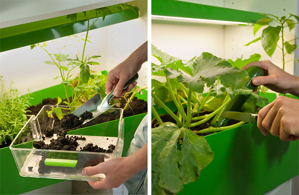 塑化劑風暴之後,大家對吃的、喝的更小心翼翼,要把市面上所有食物、飲料的生產過程都攤在陽光下,在實務面上有點難以達成,難免讓人到現在還常常吃得不安心,而動起在家裡種點蔬菜水果自給自足的念頭,設計師Charlotte Dieckmann和Nils Ferber便以回收的概念當作出發點,在廚房中打造出可以自種自產自消的「Parasite Farm」。