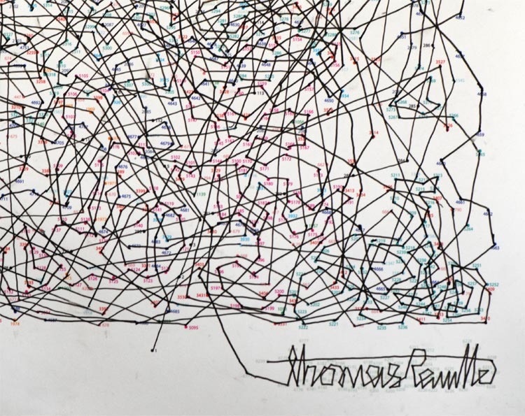 設計師Thomas Pavitte每標記完400個點後,就會換另外一種顏色以方便他好辨認清楚,順利找到他下一個數字編號。就連設計師親筆簽名也不能放過連連看遊戲!