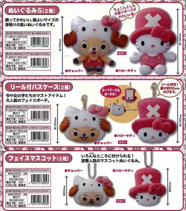 前 幾天就有聽到風聲,日本超人氣動漫「海賊王(one piece)」與最夯的一隻貓「Hello Kitty」決定聯手展開一波新的搶錢活動,這次由東映動畫與三麗鷗的超級跨界合作,將從11月開始推出350種類的商品,其中包含了文具、生活雜貨、衣 服、配件等,絕對會讓無數少男少女的荷包大大出血,並且無怨無尤啊!