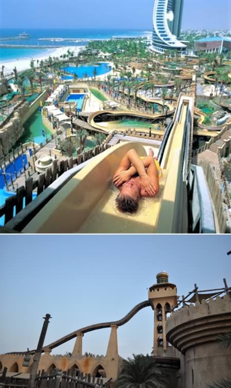 在阿拉伯聯合大公國這種沙漠地區,水上樂園的存在應該比綠洲還珍貴,不過令咱們詫異的,不是他們真的蓋出比綠洲珍貴的水上樂園--瘋狂維迪水上樂園(Wild Wadi Waterpark)中,而是樂園中擁有美國之外全世界最高、最快的無重力滑水道Jumeirah Sceirah,看來他們即使生長在沙漠,也是很懂得水上的享受啊!