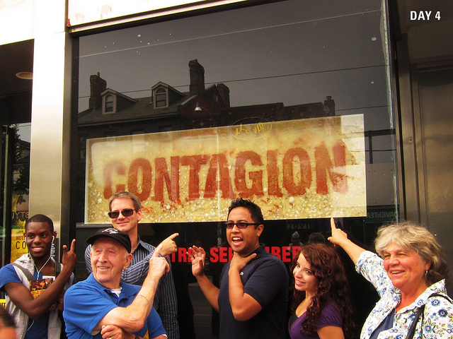為了幫這部電影做宣傳,8月底在加拿大 多倫多的時候,特地打造了2個巨大培養皿,並在裡面塗滿了細菌和黴菌,這廣告看板就活生生的在人群中生長了起來,而且細菌孳生每天都有不同的變化,讓人不得不停下腳步來看一下,替這部電影達到很好的宣傳效果!