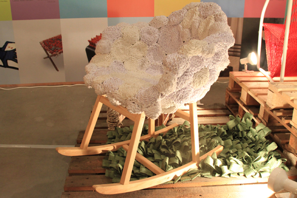 如果你是喜歡手作商品的朋友,接下來幾個主題展應該就是你的菜囉!像是由綠粉絲創意主辦的「布邊效應」就是全部由布作商品組成的展,分條加工後遺留的廢布邊,在設計師的巧手之下,都找到了新生命,有些成為了舒適的沙發,有些成為了布置的燈具,種種巧思都令人瞠目結舌。