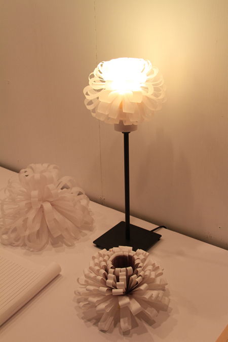 由前刀糸氏主辦的「衷紙」主題展,顧名思義就是用剪紙為主題的設計商品,你很難想像這個展區所有商品都是用剪紙製成的,像是剪紙的燈罩、衣服、項鍊、筆記本、包包、椅子通通都是,像我們這種手很笨的人來說,看到這種超精巧的作品,只有駐足讚嘆的份兒啊!