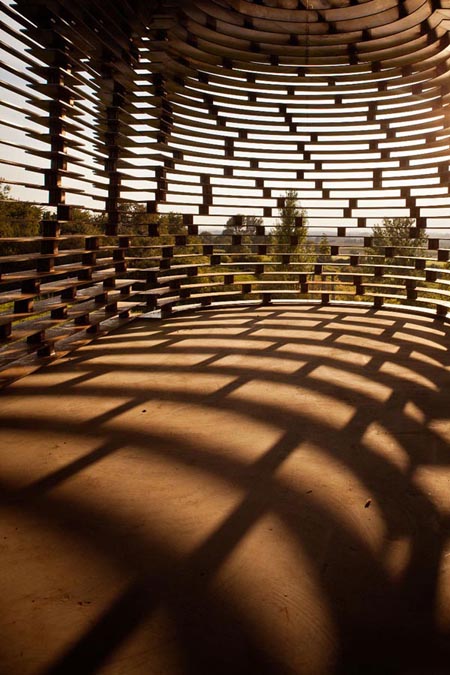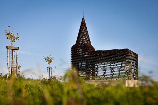 一般人想到透明,第一個想到的就是玻璃建築,不過這座十公尺高的教堂卻不一樣,兩位建築師使用100層鋼板,建造出這棟穿透式建築物,從內向外望去,一層層的鋼板將周遭的鄉間景色切割成一塊塊的小方塊,考驗著每個人欣賞世界的角度,然而從教堂外灑進來的陽光,反而更像是建築師留給上帝的隨堂考,隨著太陽位置的遷移,在教堂內揮發出不同的光影變化,究竟哪個角度最能營造出聖潔聖靈的神聖光輝fu呢?