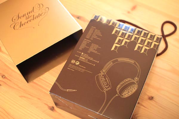 打開金色的外盒之後,是巧克力色的內盒,上頭還印著耳機的規格說明與外型,到這裡才看得出來這是個耳機包裝。