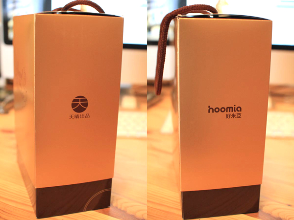 金色外盒兩旁還分別印上了天晴設計與hoomia好米亞的品牌Logo,質感相當好。