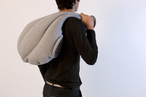 設計師 kawamura Gganjavian很貼心的設計,讓使用者雖然身在公眾的空間當中,但也是能擁有那小小的私人空間。這個枕頭的使用情境就是當工作到一半周公找上門的話,可以不用離開座位,只要把桌上的東西撥開,不在意別人異樣的目光,瀟灑的拿出這個鴕鳥枕頭,用力睡下去!不僅可以補充體力,還能溫暖你的頭和手。