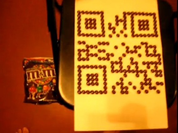 美國一個很無聊的人在去年 8 月用一包 M&M 巧克力做成了 QR Code,還真的可以連到 M&M 的網頁 URL!只是 M&M 為什麼沒有拿來利用做免費宣傳,就不得而知了!