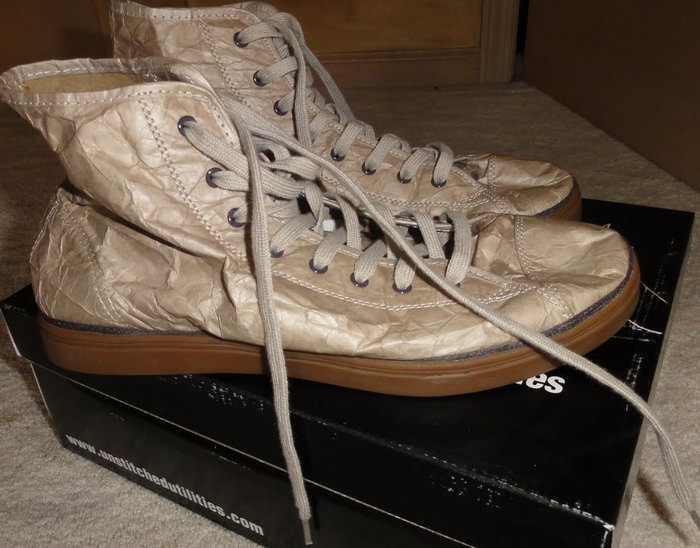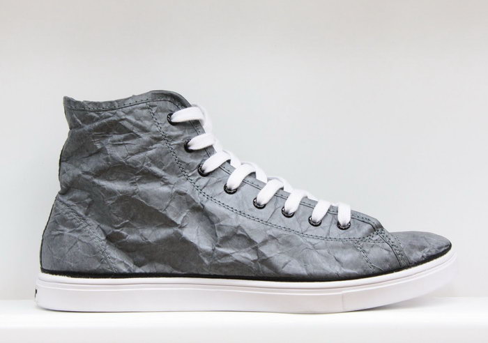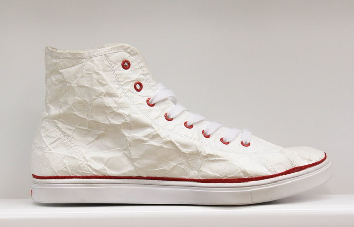 近年來環保盛行,連球鞋也吹起了環保風,美國球鞋品牌Unstitched Utilities用創新的手法將環保理念與我們每天都會穿的鞋子結合。它們選中了美國杜邦公司的專利產品 "Tyvek" 來當做環保球鞋的材質,"Tyvek"是一種類似紙質的再造材質,輕巧耐用,這種特殊材質在表面有一層臘質塗層,絕對防水而且不易撕碎,所以就算是最近惱人的雨天也能讓你輕鬆一秒就hold住,絕對不會發生鞋身與鞋底分離這樣尷尬的事阿!