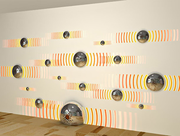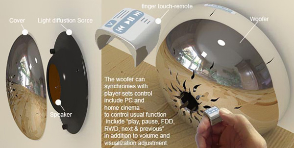 這組看起來像是裝置藝術品的Magic Spheres,其實是透過喇叭內的燈具與播放的音樂同步,能夠隨著節奏投射出繽紛的圖案,有點像是iTunes裡的視覺效果。(Designer: Morteza Faghihi)