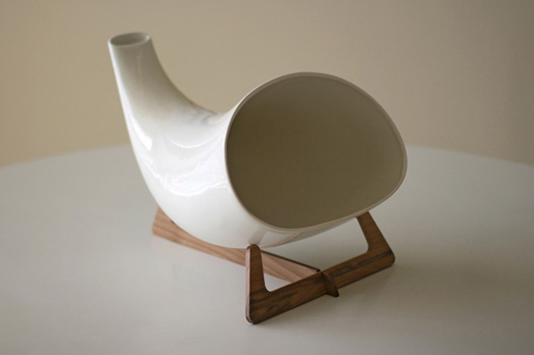 就如同你所見,這款MegaPhone的設計概念很簡單,就是以號角揚聲的物理原理,讓上頭的iPhone、iPod的音量透過陶瓷號角而擴大,簡單而實用。 (Designer: en&is)