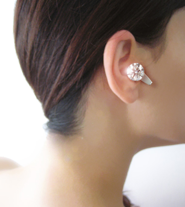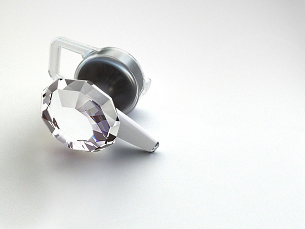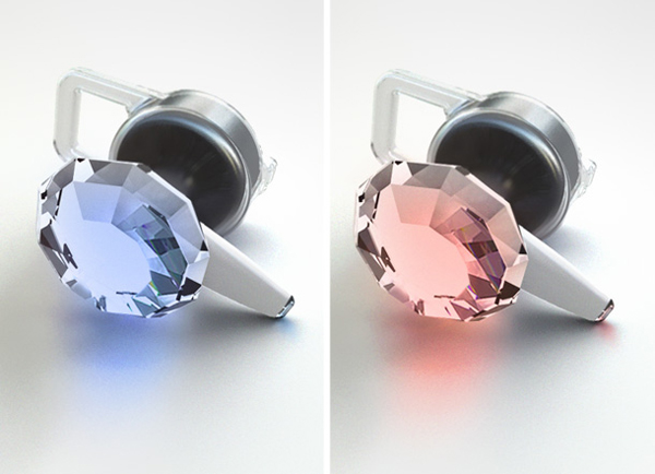 當然,這組商品「Hearring」應該不算是正港的喇叭,應該算是藍芽耳機,但是某種程度來說,它也算是小型的喇叭,上頭的水晶顏色會隨著耳機狀態而改變顏色,女生戴上去就有如水晶耳環的裝飾效果。(Designer: Kfir Schwalb Kfir)