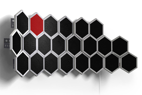 這組蜂巢喇叭(Soundhive)是一套環繞系統喇叭,模擬了真實蜂巢的排列方式,你可以將蜂巢獨立放置在房間角落,或者是將8~30個獨立喇叭組合在一起,形成一面蜂巢喇叭牆,不管在造型或是音響體驗方面,都相當有特色。(Designer: Oskar Daniel)