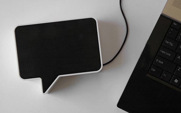 喇叭是把電子能量轉換成聲波的裝置,但如果它本身同時具有符號意涵,那麼這組喇叭就更有去了!Speak-Er就是出自於這樣的概念,如同漫畫裡的對話框,透過Speak-Er讓音樂跟你說話。(Designer: Sherwood Forlee)
