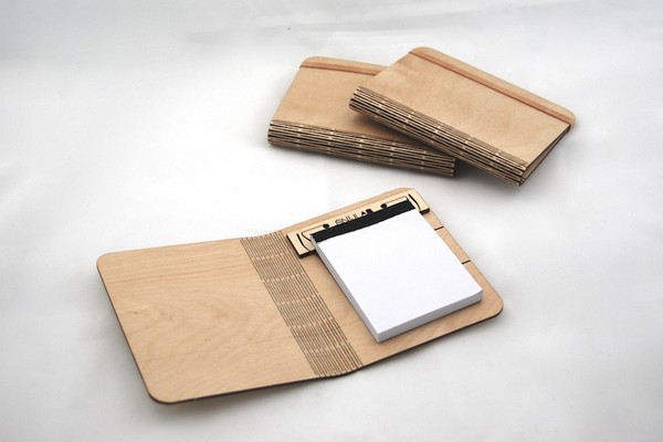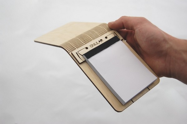 木製文具用品還算普遍,看久了好像也沒啥稀奇,荷蘭數位製造公司Snijlab就硬是多了那麼點巧思,利用雷射切割技術,在木板進行各式切割,讓木板可以彎曲、摺疊而不斷裂,當成文件夾、筆記本封面等都非常適合。