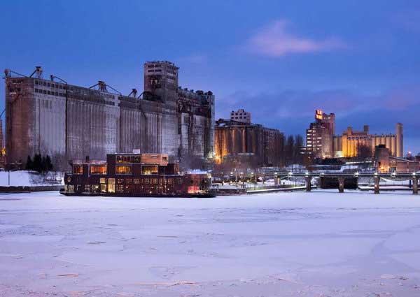 由舊港區建築,遠近馳名的蒙特婁「波塔旅館健康漂浮SPA 」(Bota Bota Floating Spa),成功地滿足了前來朝聖的觀光客。波塔旅館與著名飯店「環保綠屋1967」(Habitat '67)相距不遠,而「環保綠屋1967」是巴勒斯坦裔建築師──摩歇‧沙夫戴(Moshe Safdie),為了1967年在蒙特婁舉行的世界博覽會而興建。自世博結束後,「環保綠屋1967」改建成為私人住宅,「波塔旅館」取而代之,成為新興旅館的典範。魁北克舊城區〈Old Quebec〉是一個遠離塵囂的水城,對那裡的居民和遊客來說,這間重建的海上旅館成為奢華SPA的新指標。五光十色的產業背景,增添了「波塔旅館」的魅力,也讓它成為遊客心目中的「水上之星」。